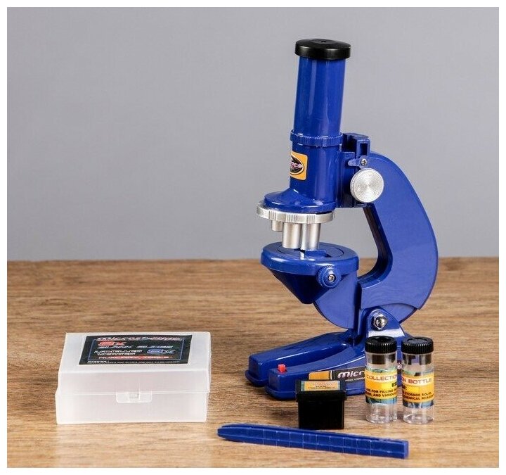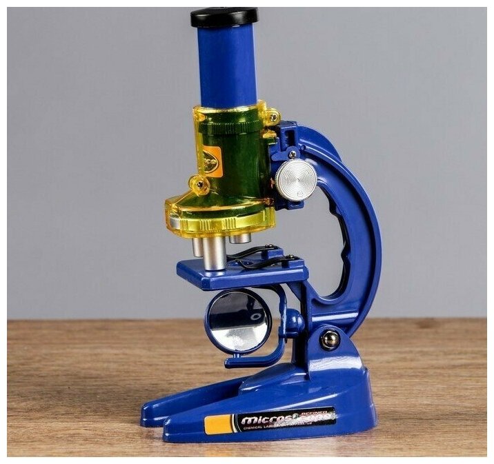 --- Микроскоп "Биология", кратность увеличения 450х, 200х, 100х, с подсветкой, синий интересное: