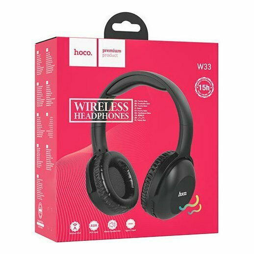 Наушники беспроводные, полноразмерные с микрофоном Bluetooth, 250mAh, 10 часов музыки, AUX hoco. W33 Art sount - черный