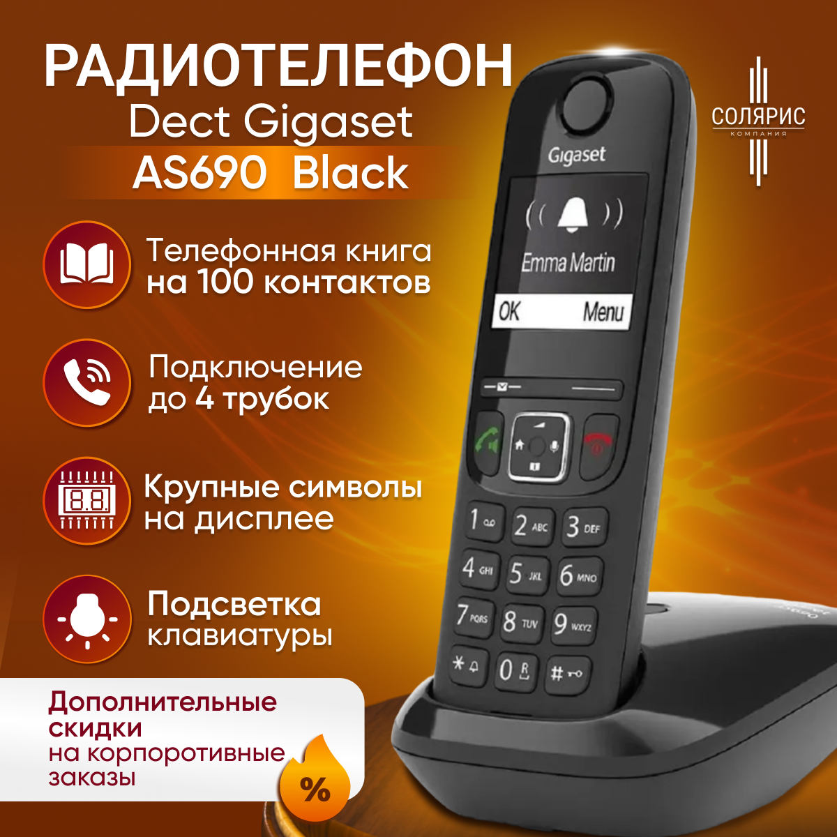 Радиотелефон DECT Gigaset AS690 Black интересное: