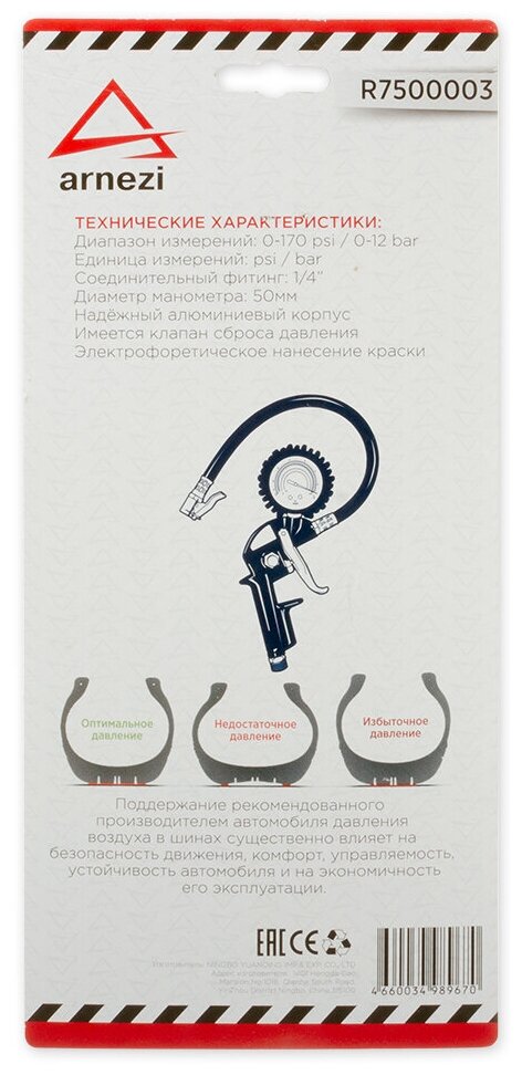 Пистолет Для Подкачки Шин С Манометром, Электрофоретическое Покрытие Arnezi R7500003 ARNEZI арт. R7500003