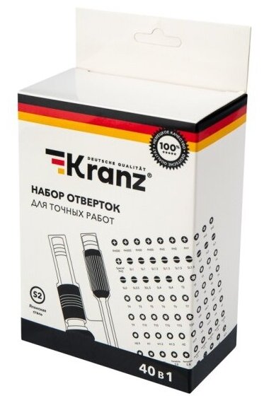 Набор отверток для точных работ , сталь S2, 40 предметов KRANZ