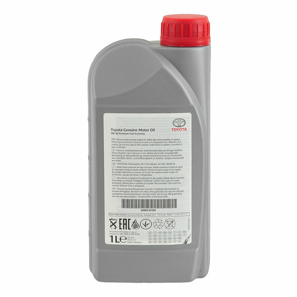 Масло моторное Toyota Premium Fuel Economy 5w30 синтетическое, API SN, ACEA C2, универсальное, 1л, арт. 08880-83388