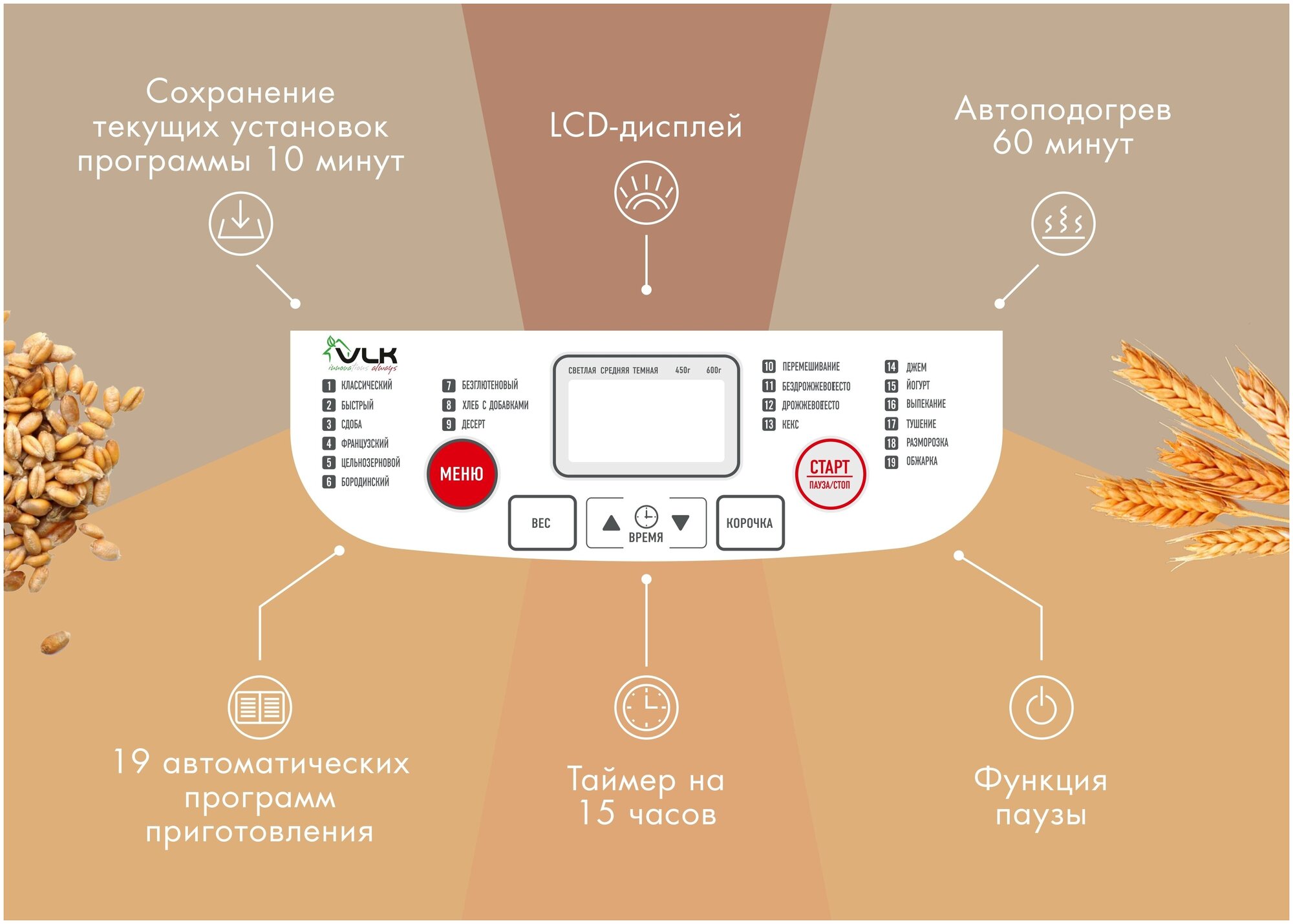 | Количество программ выпечки | 19 |