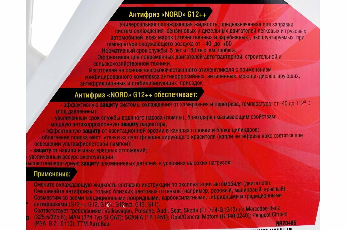 NORD NR 20485 Антифриз NORD-40 G12++ 10л красный