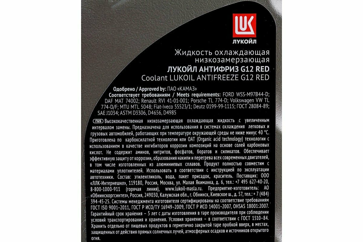 LUKOIL жидкость охлаждающая антифриз RED G-12 ЛУКОЙЛ 5 КГ 227391