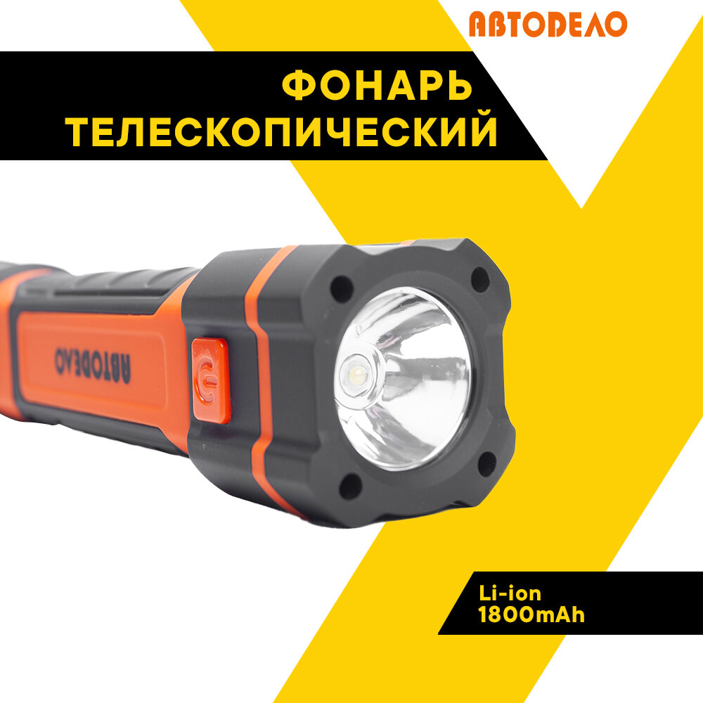 Автодело 44315 Фонарь - переноска АвтоДело светодиодный телескопический 3 СОВ + 1 LED, Li-ion 1800mAh