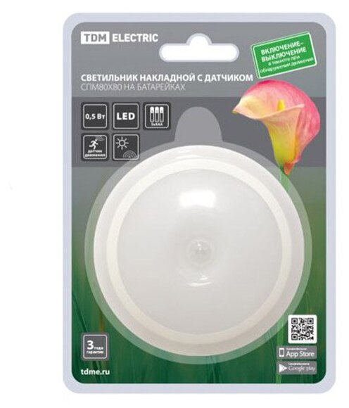 Светильник накладной светодиодный 80х80, 0,5 Вт, Li-Pol 3,7 В 0,6 А*ч, дат. движ. и освещ., USB, TDM интересное: