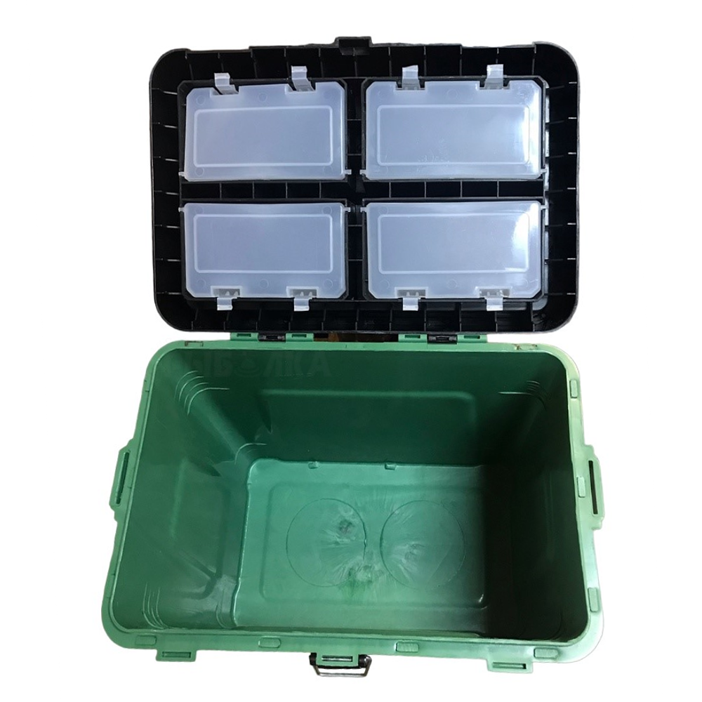 Ящик зимний зеленый большой ТРИ кита (4+4 отделения для приманок) (380*360*240)