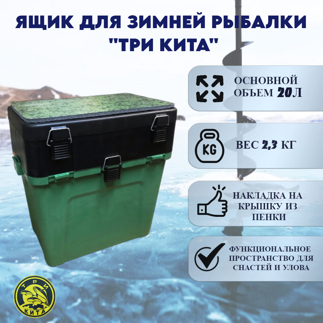 Ящик для рыбалки ТРИ кита Зимний большой 36х24х38 см черно-зеленый