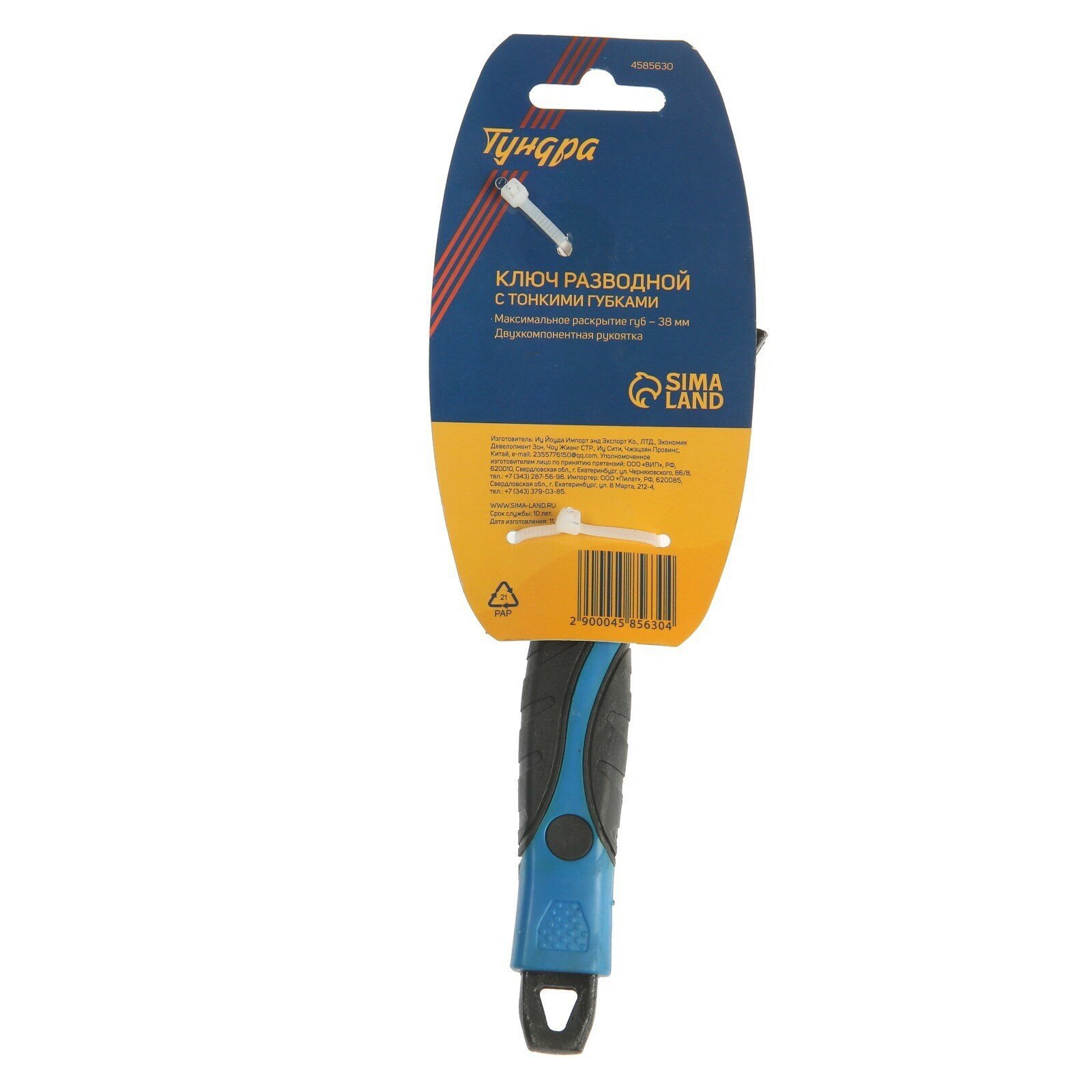 Ключ разводной тундра с тонкими губками, раскрытие до 38 мм 4585630