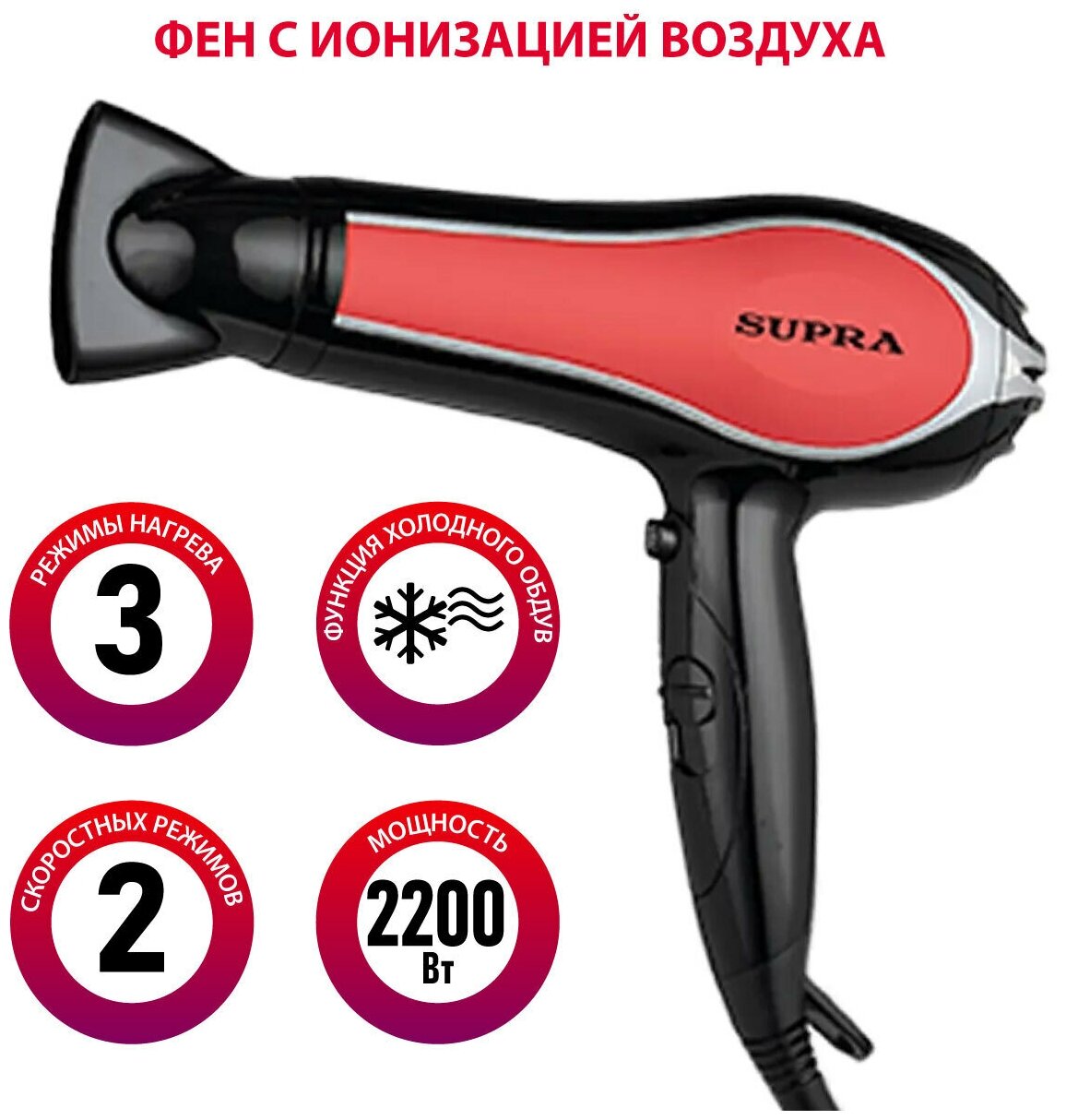 Фен SUPRA PHS-2206L 2200 Вт, черный/красный