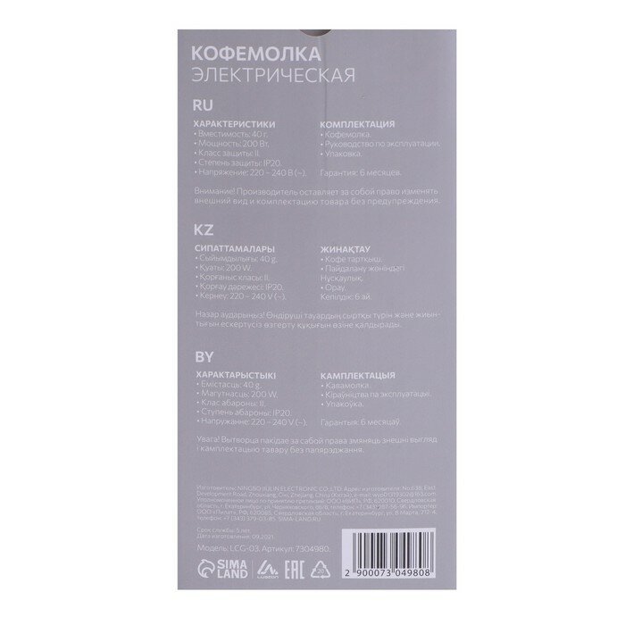 Luazon Home Кофемолка электрическая LuazON LCG-03, 200 Вт, 40 г, серая интересное: