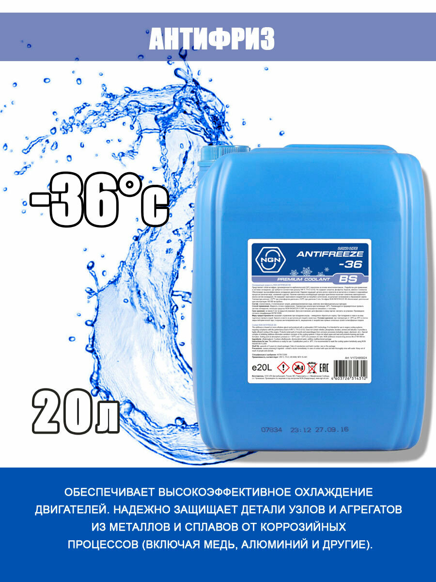 Антифриз, готовый раствор BS -36 синий 20л NGN V172485824 | цена за 1 шт