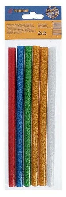Клеевые стержни тундра 11 х 200 мм разноцветные с блестками 6 шт. интересное: