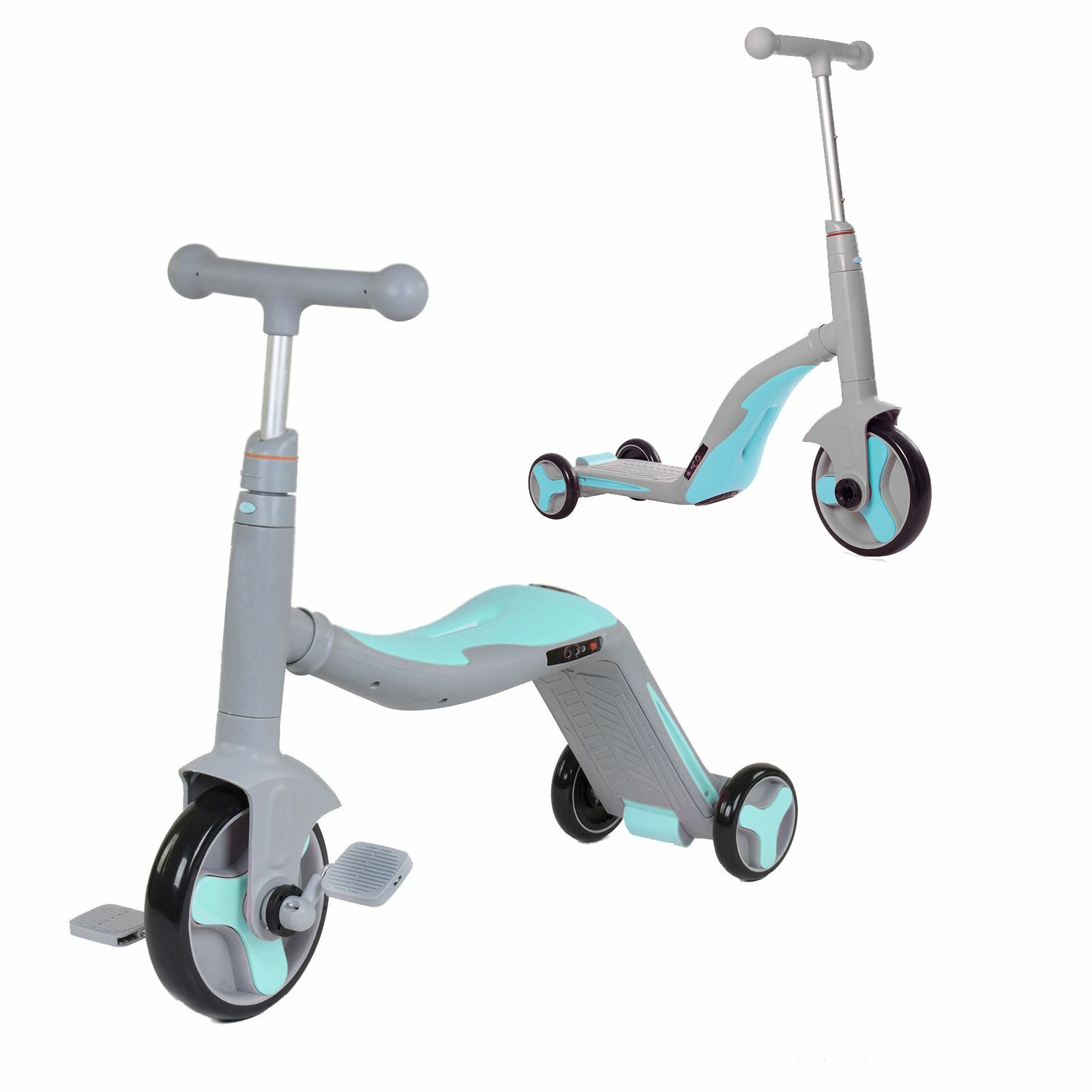 Купить Детский самокат-беговел с музыкой 3в1 (самокат, беговел, велосипед) - FL-868 серо-синий (FL-868-BLUE)