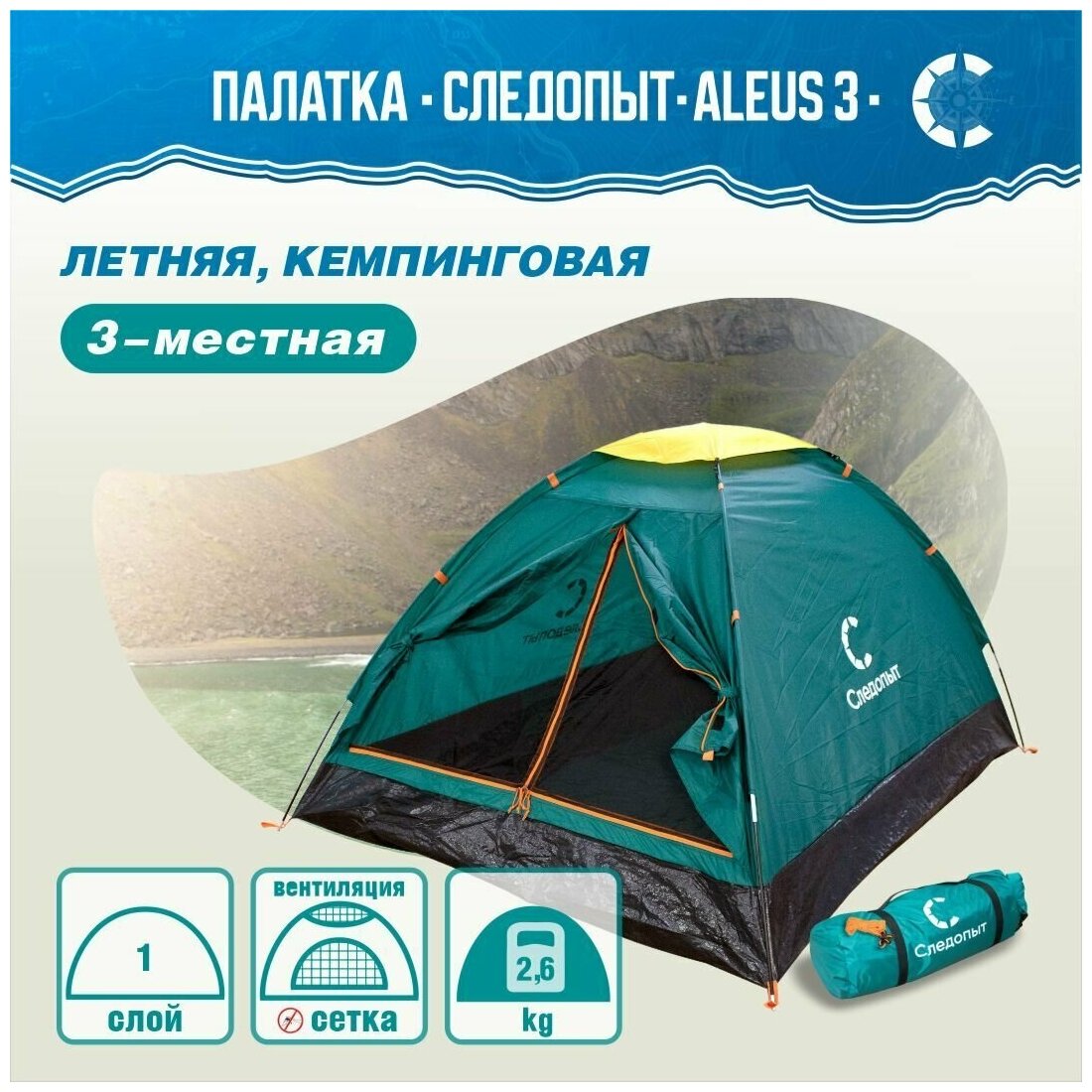 Палатка летняя однослойная Следопыт Aleus 3, 3-х местная 205х195х120см, 2.6 кг, с чехлом