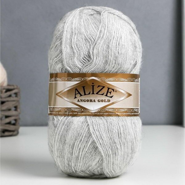 Пряжа для вязания ALIZE Angora Gold (Ангора Голд) цвет: светло-серый 208 , 5 мотков*100г*550м 20% шерсть 80% акрил