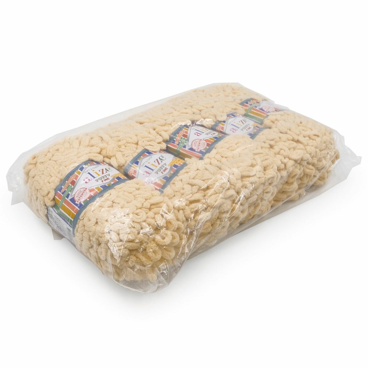 СохранитьПряжа плюшевая Alize Puffy Fine (Пуффи Файн) - 5 мотков 310 шампань, для вязания рукми, маленькие петельки (2см), 100г 14м интересное: