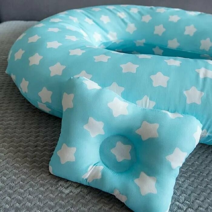 Подушка для беременных BIO-TEXTILES "U Комфорт + подушка для младенцев "Малютка" Звезды голубые с холлофайбером