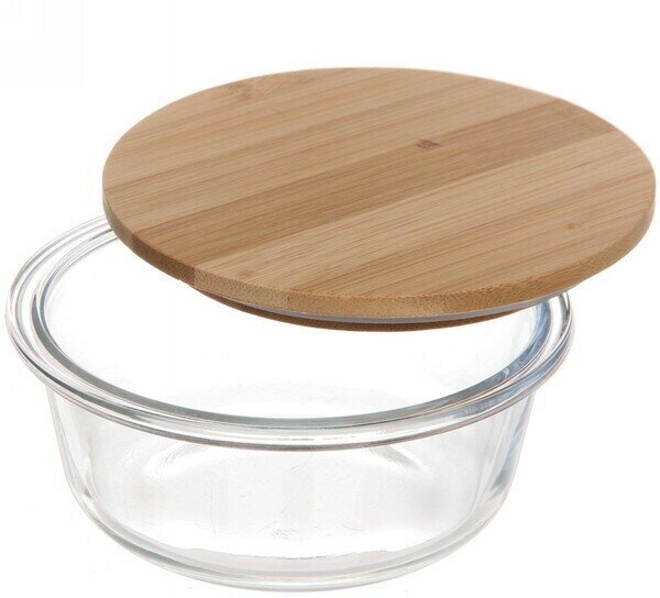Контейнер стеклянный 300мл "Хай-Тек" круглый с бамбуковой крышкой интересное: