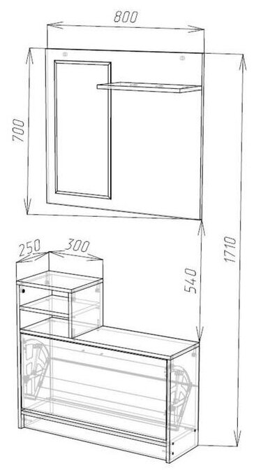 | Габариты | общие габариты композиции: ширина 800 мм, глубина 250 мм, высота 1710 мм |