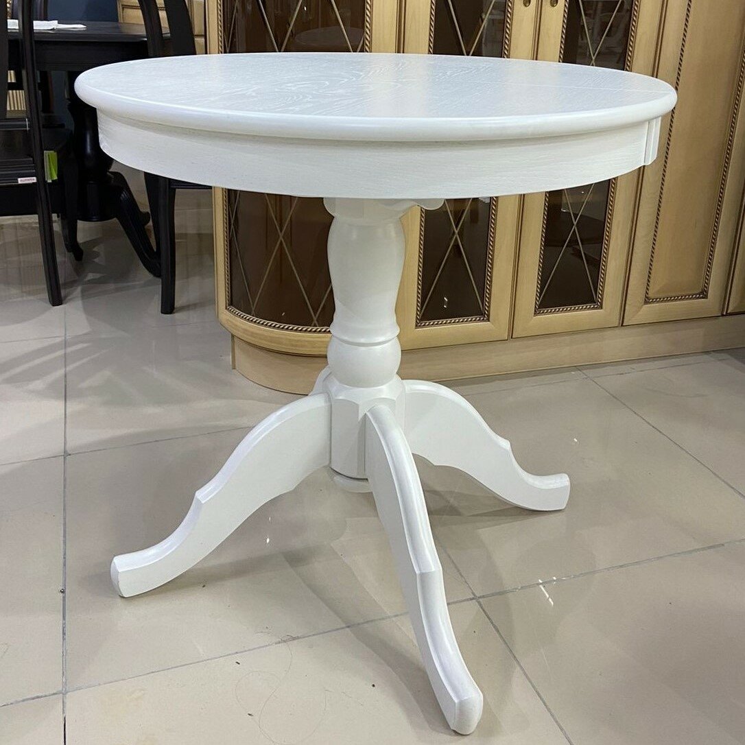 Купить Стол круглый 80см, белый (массив берёзы, шпон, мдф)