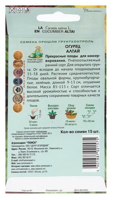 Семена Огурец "Алтай" 15 шт интересное: