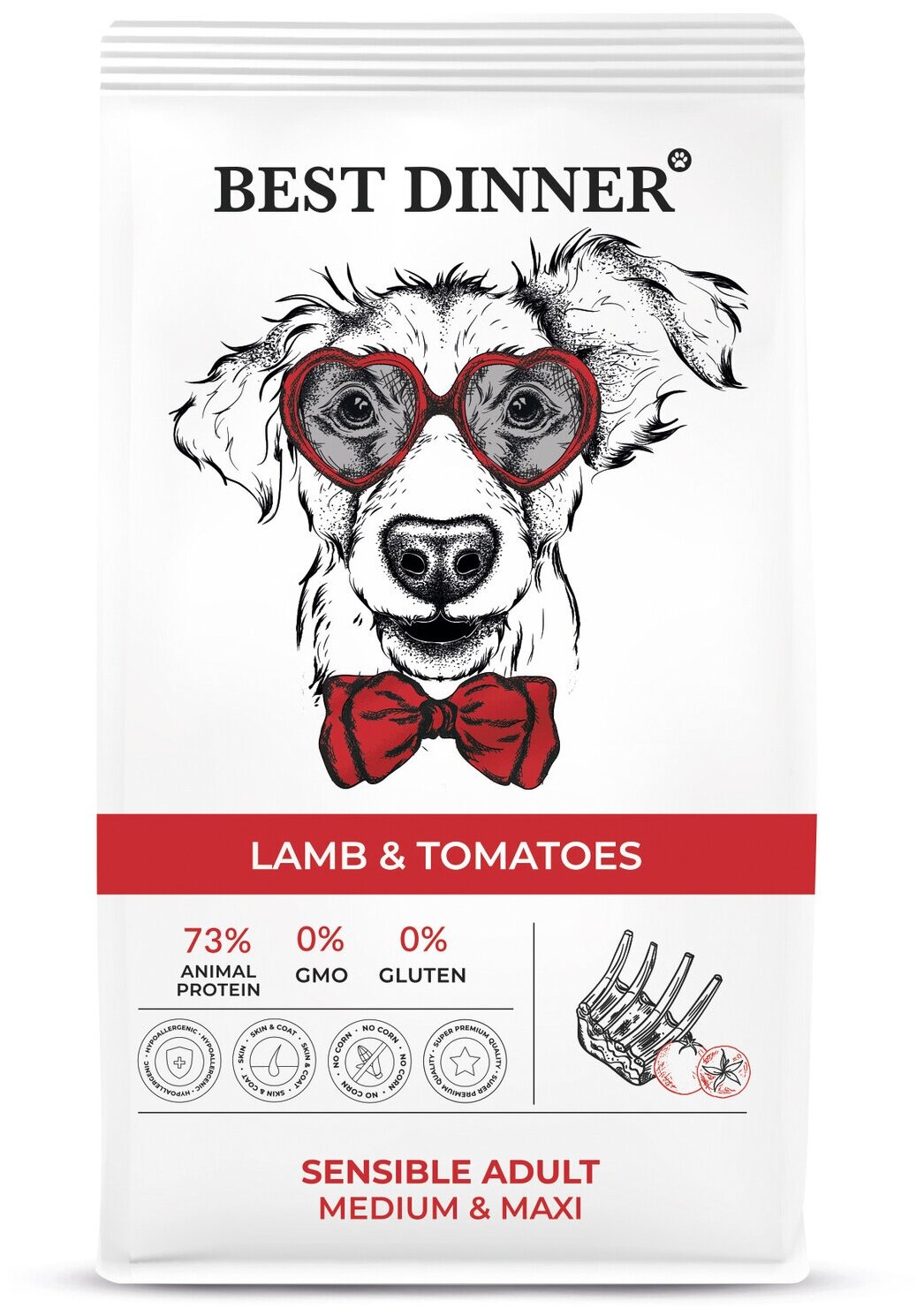 Best Dinner Adult Sensible Medium & Maxi Lamb & Tomatoes сухой корм для собак средних и крупных пород склонных к аллергии и проблемам с пищеварением с ягненком и томатами - 15 кг