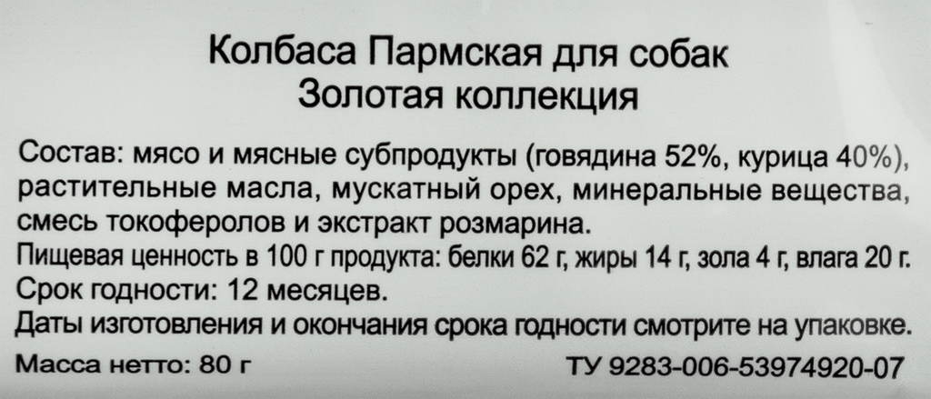 Колбаса Пармская для собак Золотая коллекция 80г набор 3 шт