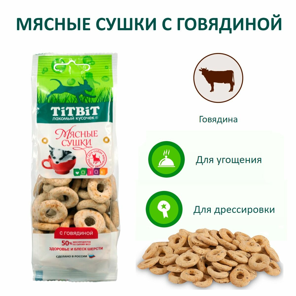 Мясные сушки с Говядиной Лакомство для собак Титбит 100г интересное:
