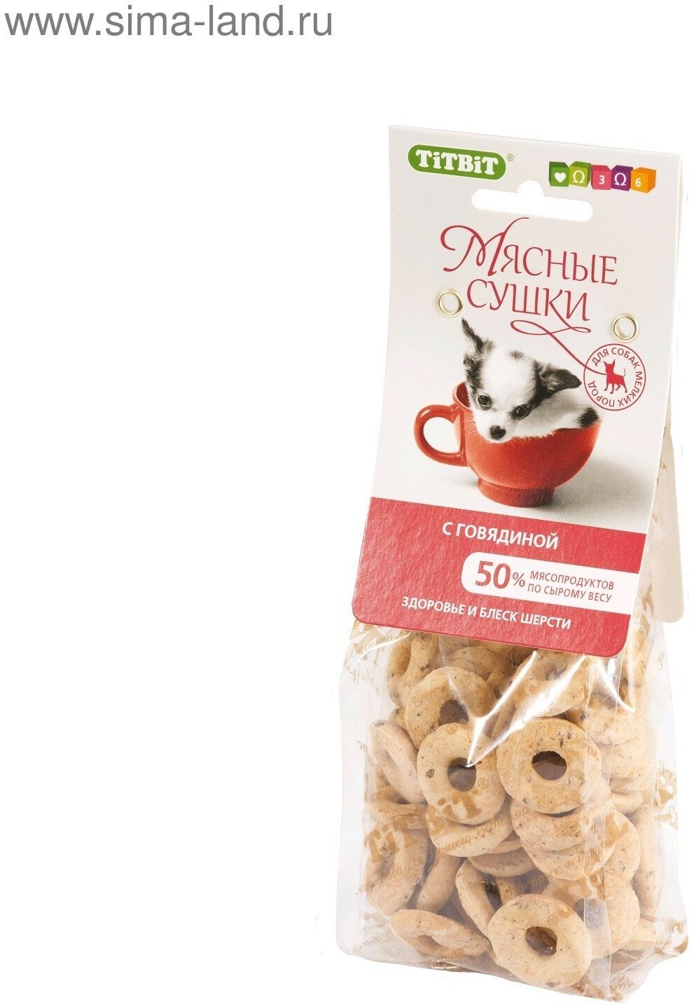 Купить Мясные сушки с Говядиной Лакомство для собак Титбит 100г