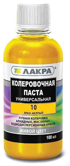 Колеровочная паста Лакра Универсальная, 10 ярко-желтый, 0.1 л
