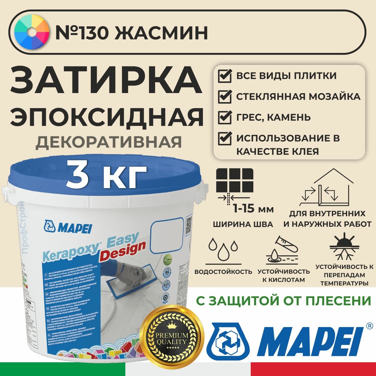 СохранитьKerapoxy Easy Design №130 (жасмин), (3 кг) эпоксидный раствор для затирки интересное: