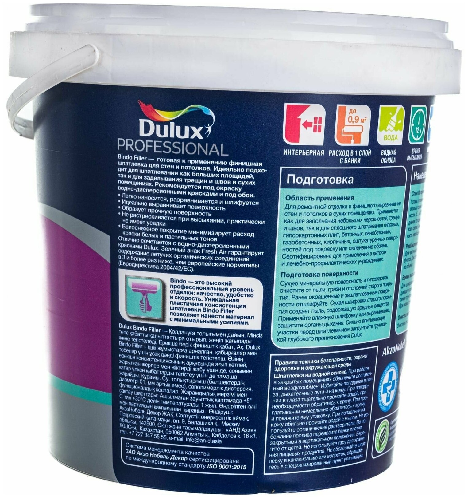 DULUX Bindo Filler шпатлевка финишная под покраску (0,9л=1.5кг) / DULUX DULUX Bindo Filler шпатлевка финишная колеруемая безусадочная под покраску и о