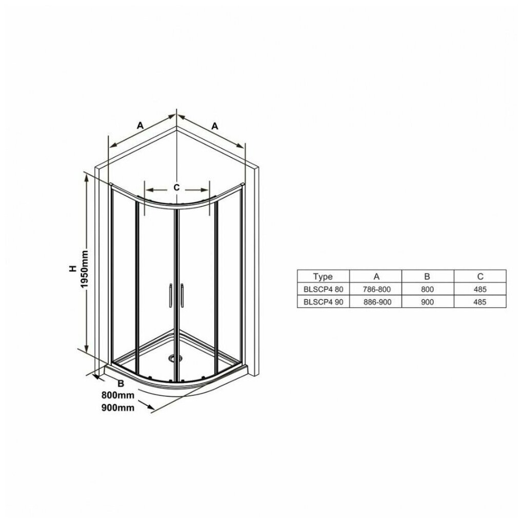 Душевое ограждение Ravak Blix Slim 90х90х195см, арт. X3BM70C00Z1, 6 мм, четверть круга, blscp4-90 блестящий + транспарент