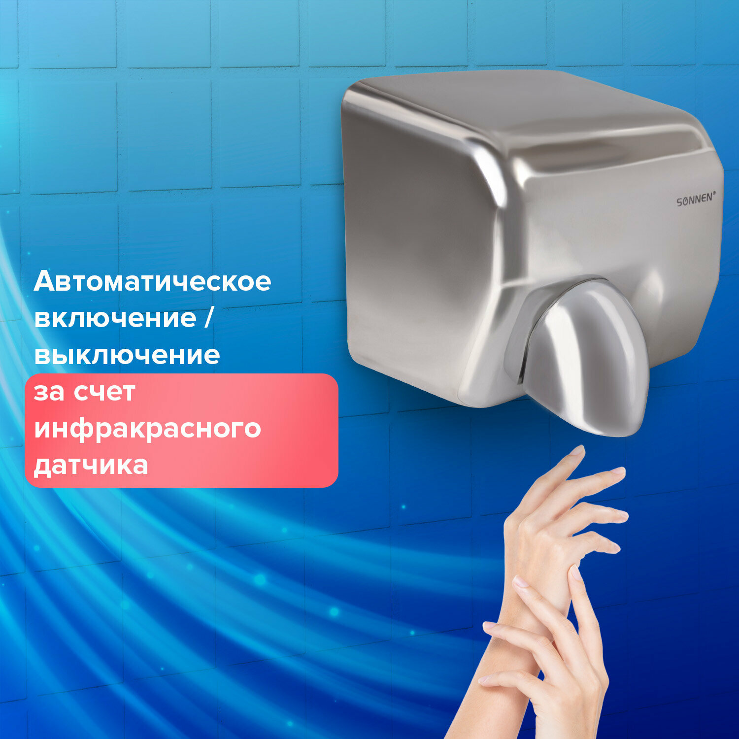 Сушилка для рук электрическая Sonnen HD-798S, 2300Вт, нержавеющая сталь (604194)