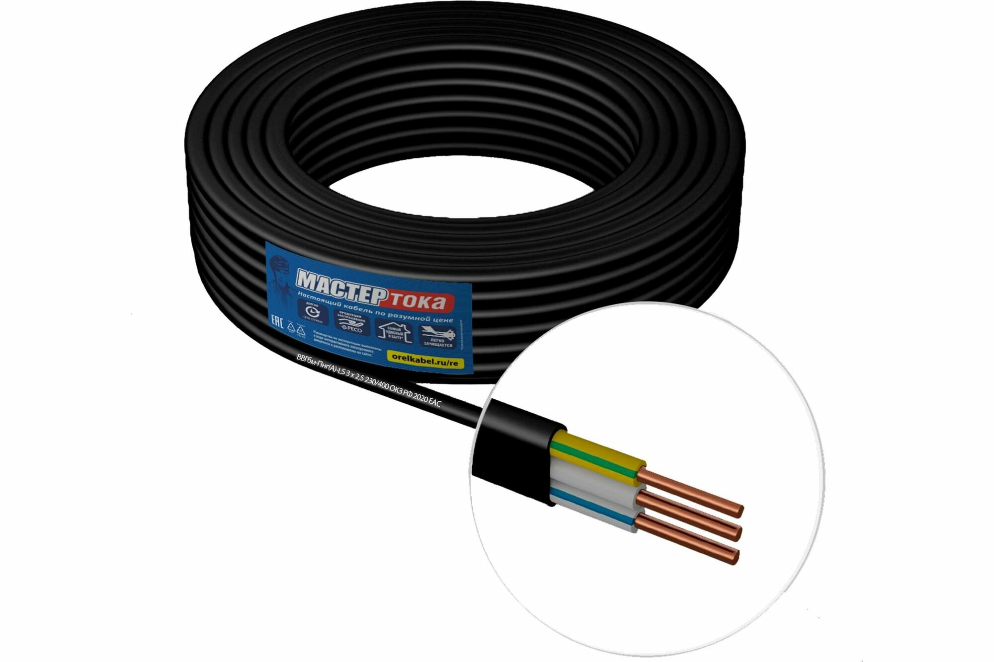 Купить Кабель "Мастер Тока" ВВГбм-Пнг(A)-LS, сечение 3х2.5 мм2, 50 м, черный