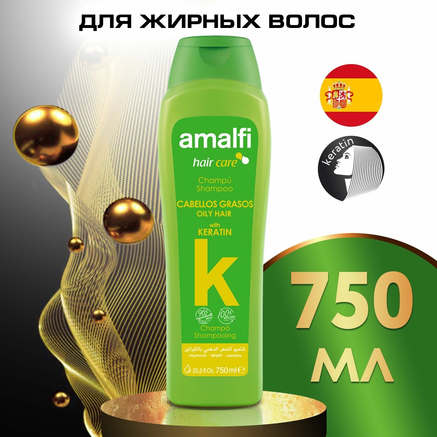 Amalfi шампунь Keratin для жирных волос, 750 мл