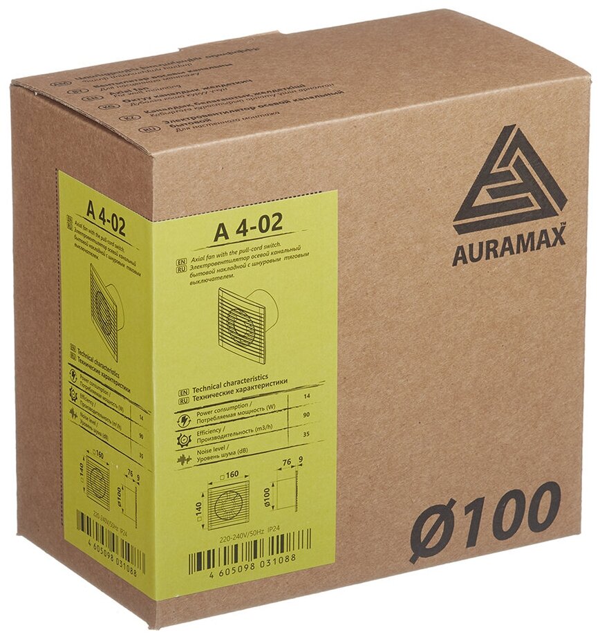 Вентилятор осевой вытяжной Auramax A 4-02, с тяговым выключателем, D 100, 14 Вт