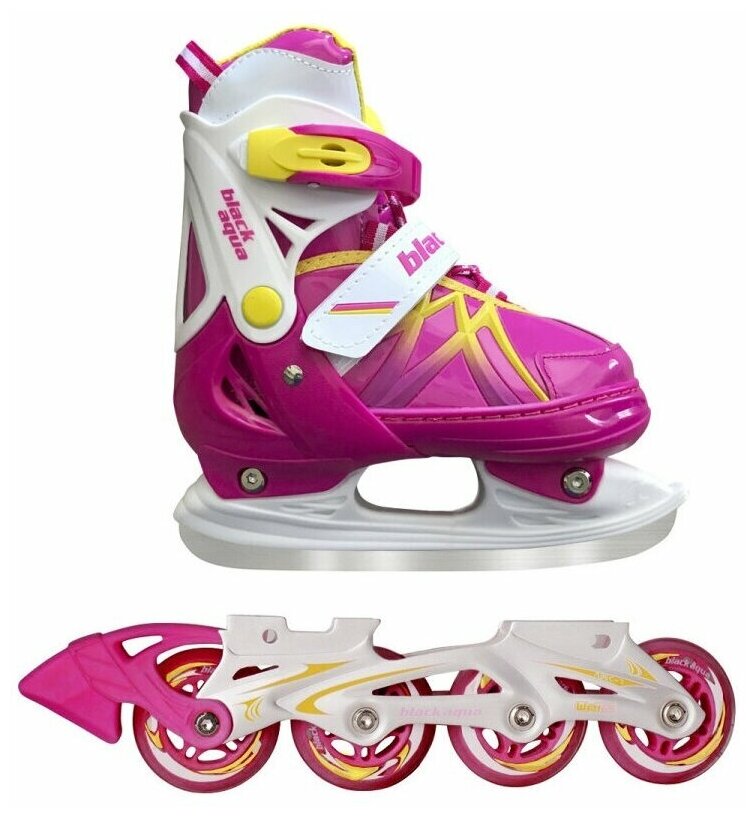 Коньки + ролики/ Коньки детские ледовые раздвижные с роликовой платформой BlackAqua AS-410 фуксия размер 31-34