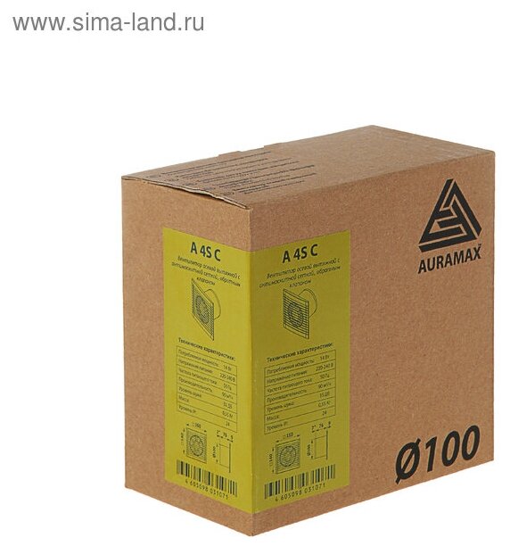 Auramax Вентилятор вытяжной AURAMAX A 4 С, 160х160 мм, d=100 мм, 220‒240 В, с обратным клапаном