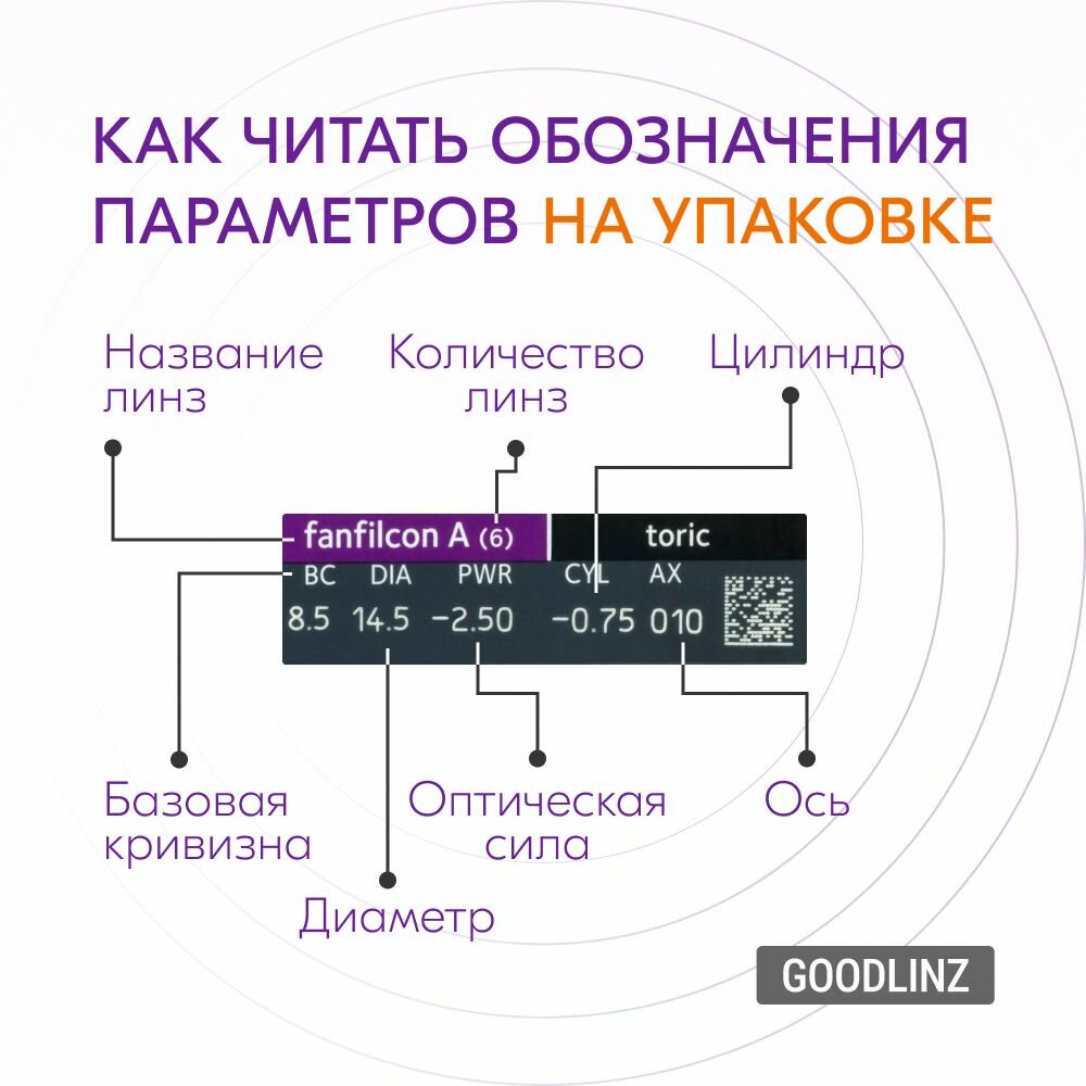 Контактные линзы Avaira Vitality toric R 8.5, D +4.0, CYL -1.75, AX 120, DIA 14.5, 6 линз