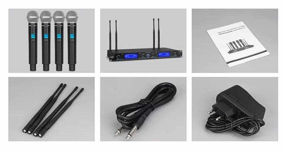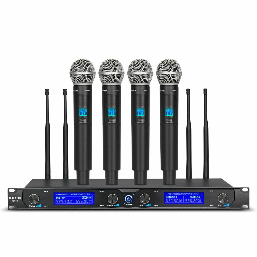 Набор беспроводных микрофонов G-MARK G440, 4 микрофона, 4 канала, база / караоке-группа / микрофоны для мероприятия интересное: