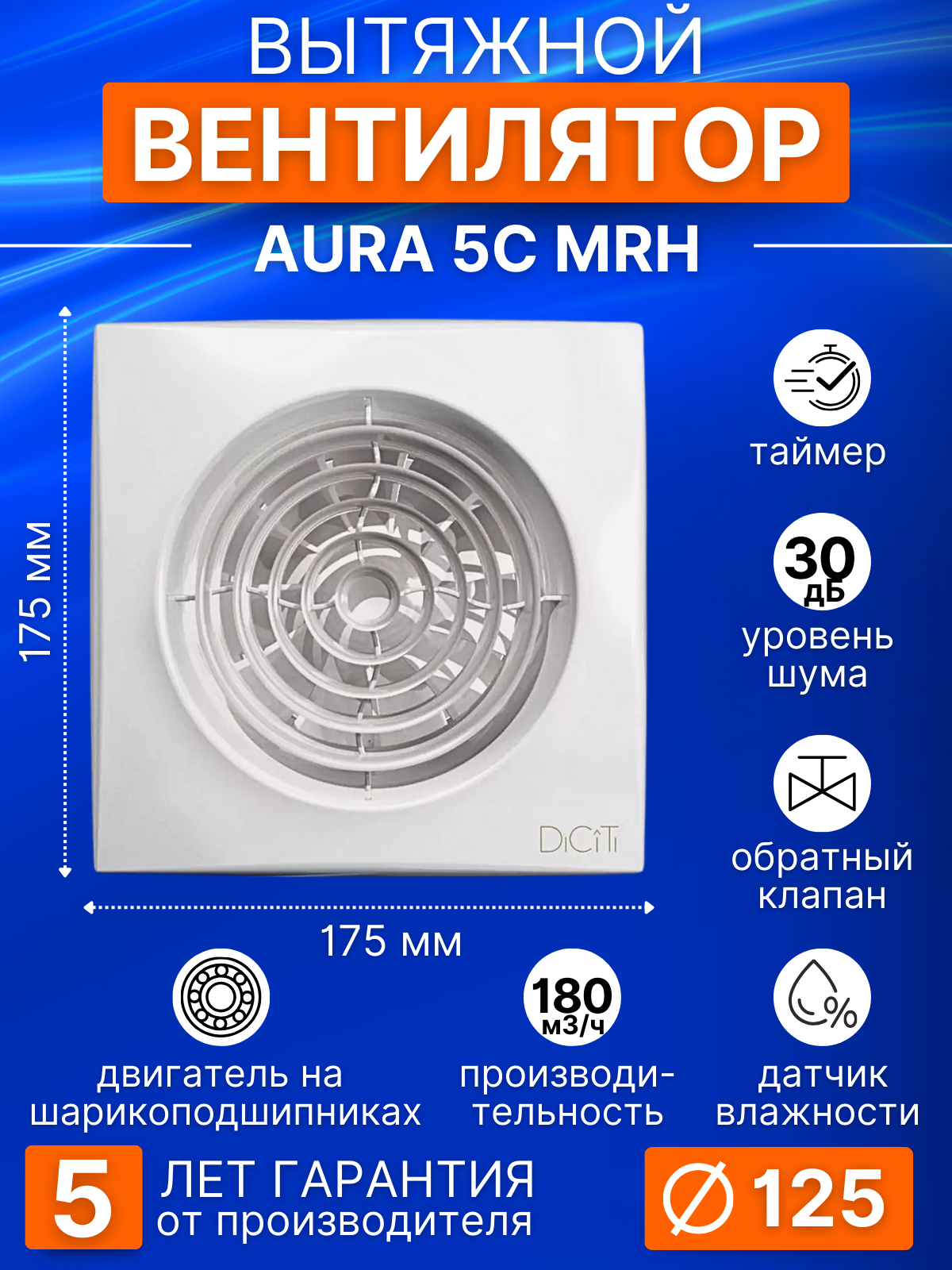 Вентилятор вытяжной DiCiTi AURA 5C MRH, 125 мм c обратным клапаном, фотодатчиком, таймером и датчиком влажности