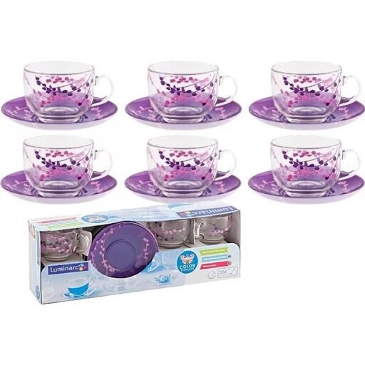 Чайный набор Luminarc кашима пурпл 12 предметов 220мл, 6 чашек