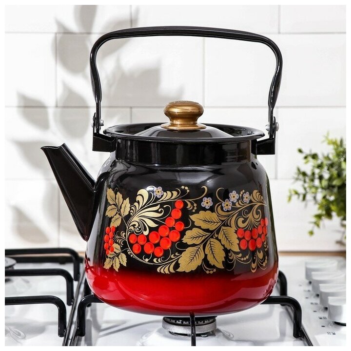 Чайник Рябинка 3,5 л, цвет красно-чёрный микс Сибирские товары 1533932 .
