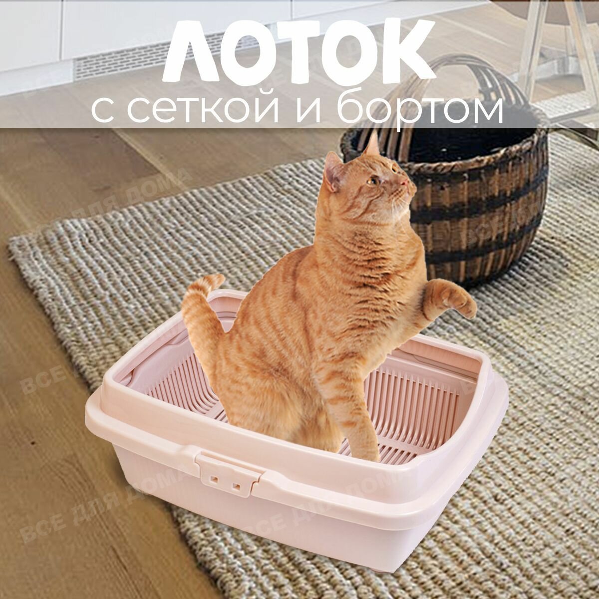 Лоток для кошек с бортами и сеткой / Кошачий туалет со съемным высоким бортиком . Лоток для кошек средний . Горшок для кошек с решеткой, цвет розовый, размер 32,5х43х15,5 см