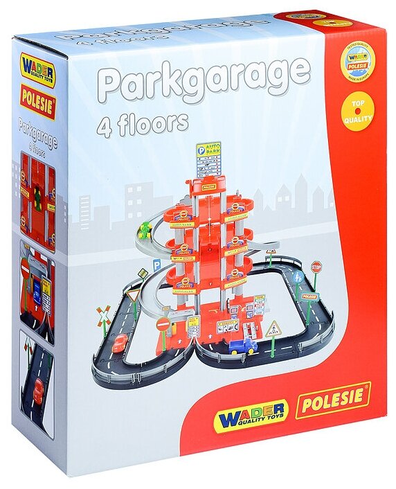 Паркинг Полесье 4-уровневый с дорогой и автомобилями, красный (в коробке) (44723)