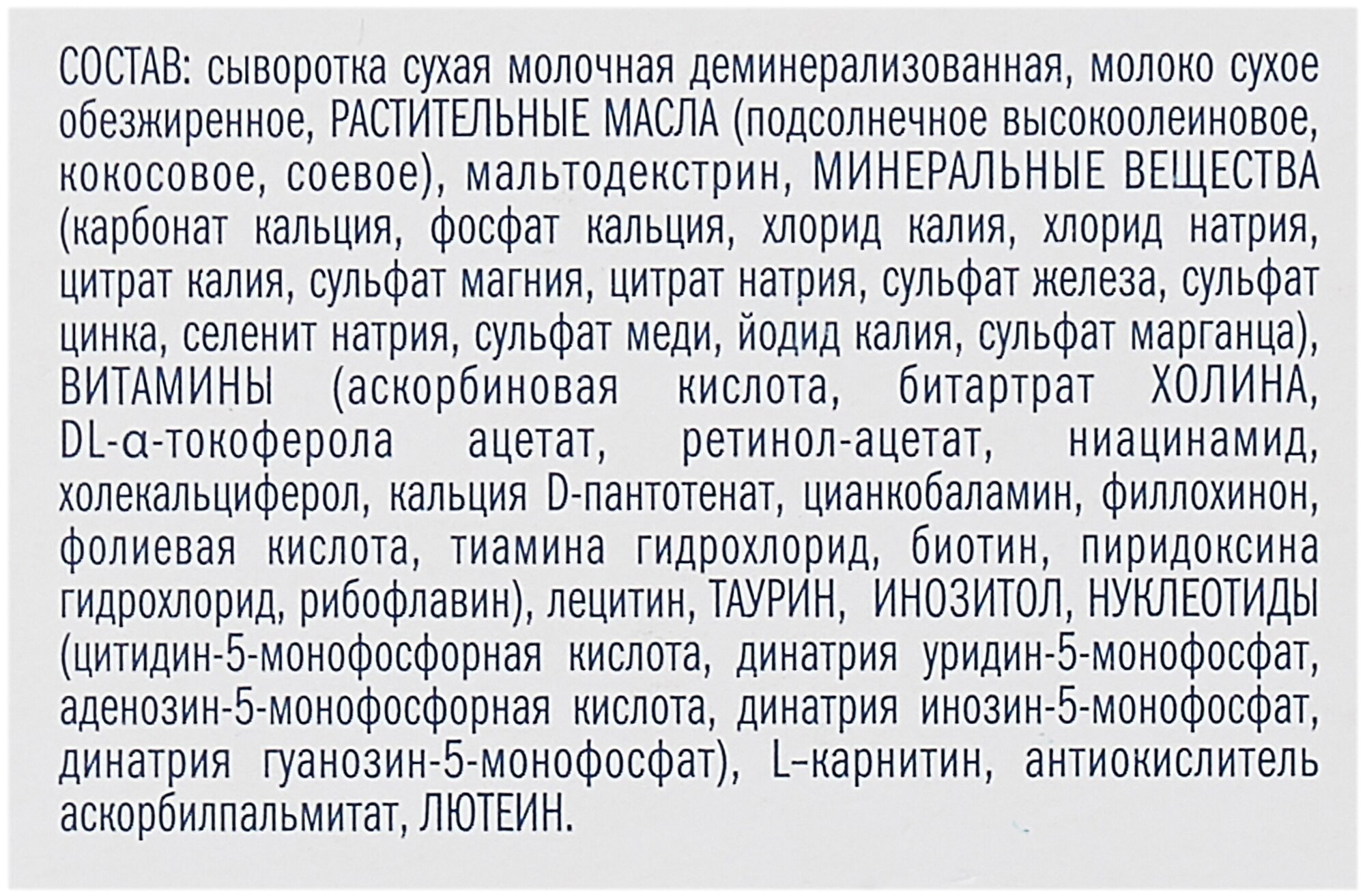 По составу очень хорошая: - без пальмового и рапсового масел; - обогащена минералами (кальций, фосфор, калий, натрий, магний, медь и др.) - обогащено витаминами (А, Е, Д, К, В1, В2, В6, В12, пантотеновая кислотой, РР, фолиевая кислотой, С, инозит, холин и др.); - содержит необходимые элементы для развития мозга и зрения; И важно! - не содержит красителей, консервантов; - не содержит искусственных добавок; - не содержит ГМО; - без добавления сахара; Произведено в России для меня тоже плюс. |