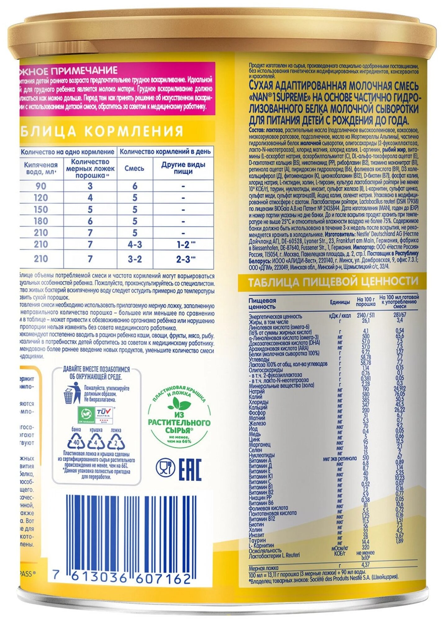 Смесь NAN Supreme. Cухая быстрорастворимая адаптированная молочная смесь с олигосахаридами на основе частично гидролизованного белка молочной сыворотки, 0-12 мес, 800 г